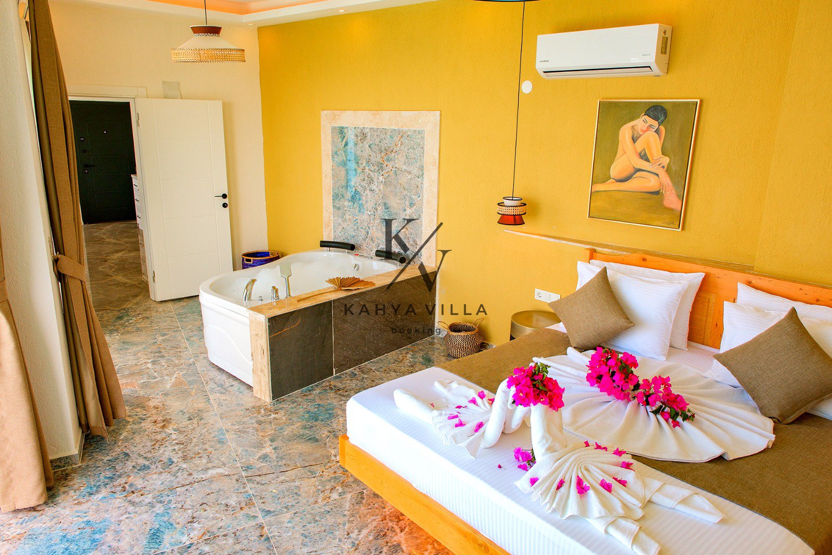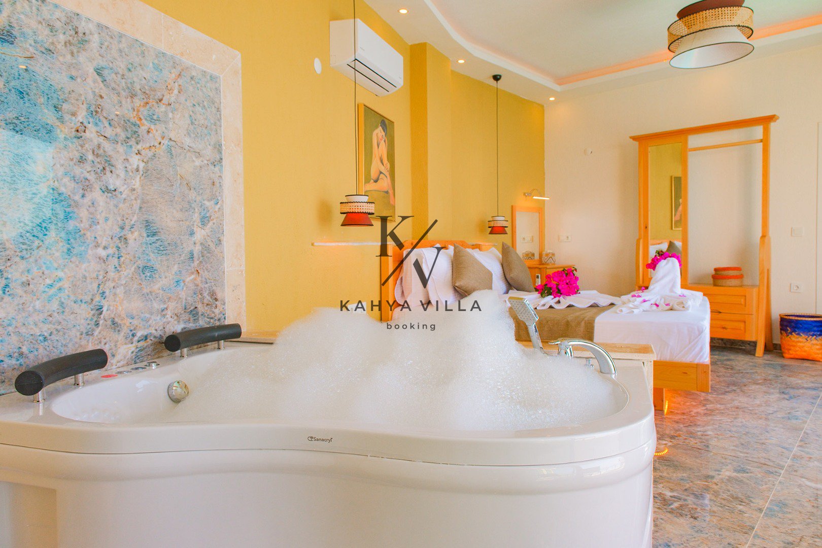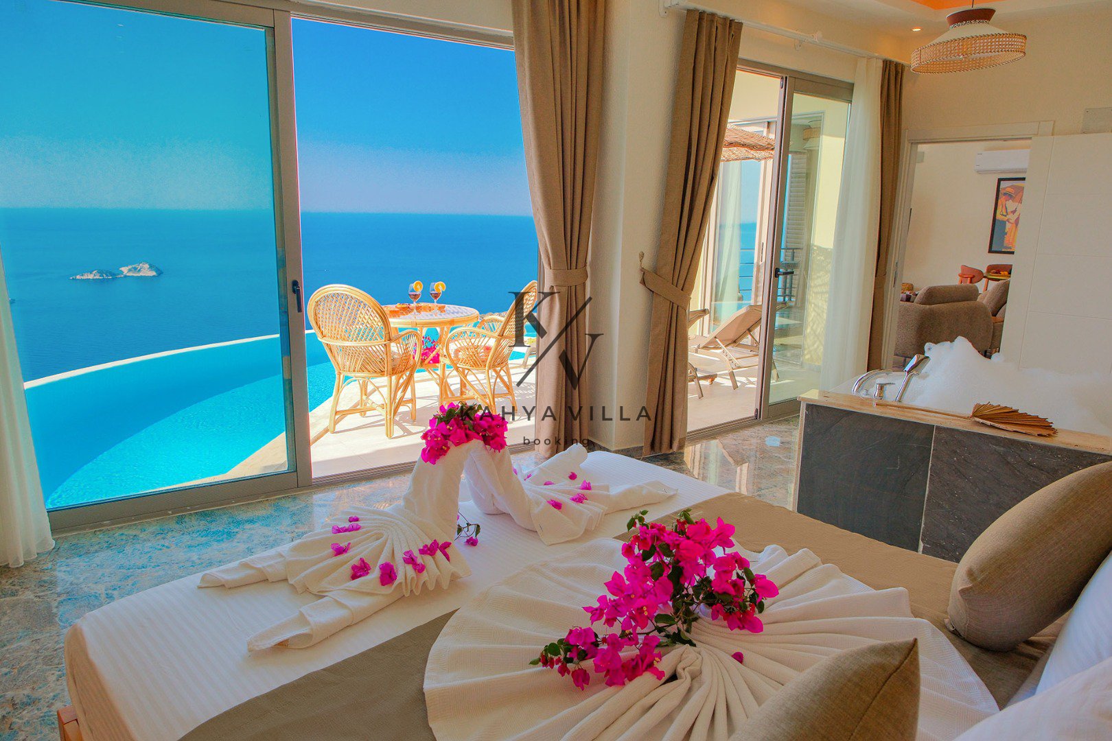 Eşsiz deniz manzarasına sahip bu özel balayı villasında, güne sonsuzluk havuzunuzda serinleyerek ve gökyüzüyle denizin birleştiği ufku izleyerek başlayabilirsiniz. Jakuzinizde günün yorgunluğunu atarken, ruhunuza dokunan o eşsiz huzuru hissedeceksiniz.