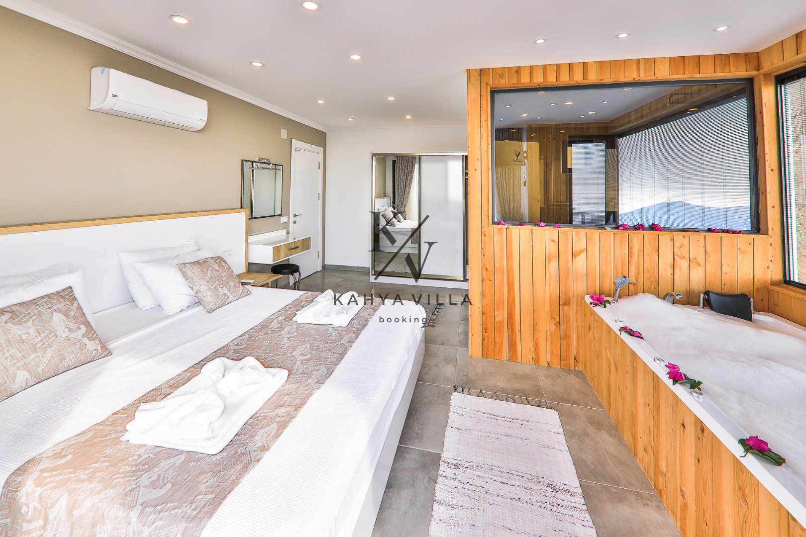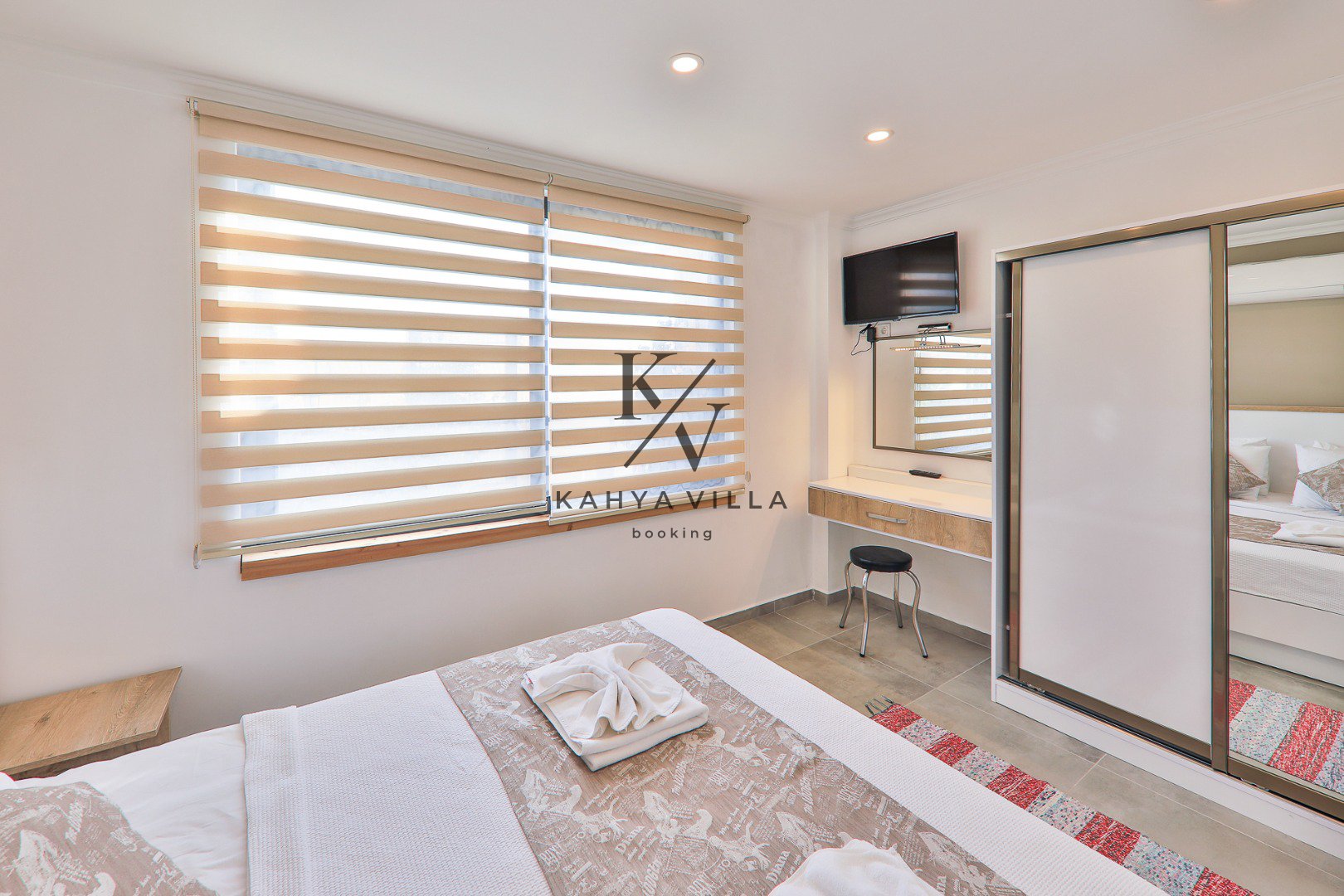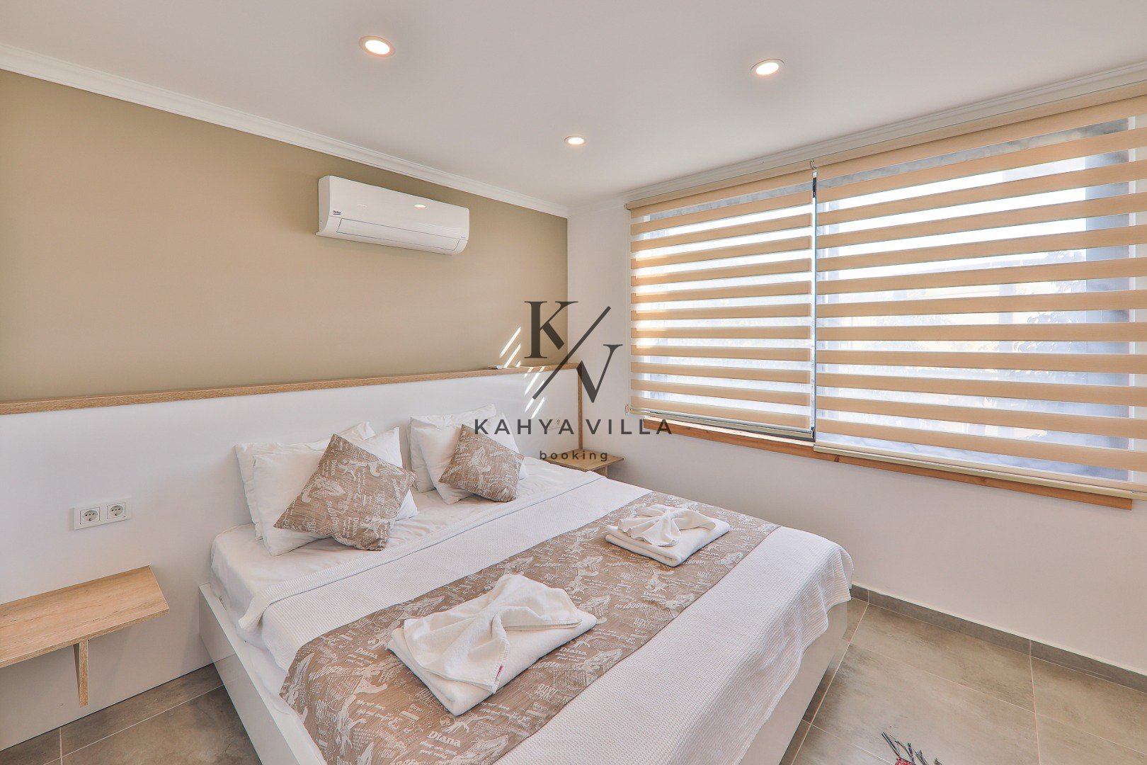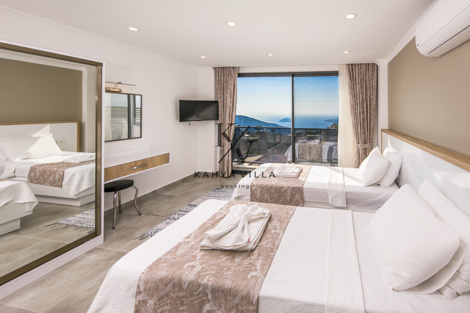 Toplam 3 yatak odasıyla 6 kişilik konaklama kapasitesine sahip olan villada; iki odada çift kişilik yatak, bir odada ise iki adet tek kişilik yatak bulunmaktadır. Tüm yatak odaları özel banyo & WC ile donatılmıştır. Kalkan Plajı’na yalnızca 5 dakika sürüş mesafesinde yer alan villa, merkezi konuma yakınlığıyla da avantaj sağlar.